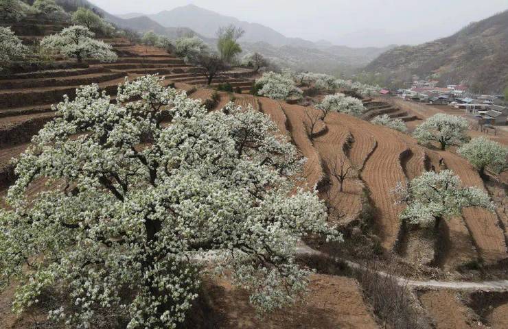 近日,地处燕山深处的河北省秦皇岛市青龙满族自治县官场乡旱作梯田间的安梨花相继盛开,农民田间劳作、游客踏青赏花的身影置身于花海之中,构成了一幅美丽的乡村田园画卷。