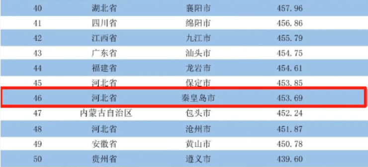 2023中国地级市品牌评价综合影响力指数揭晓,秦皇岛排名第46名!