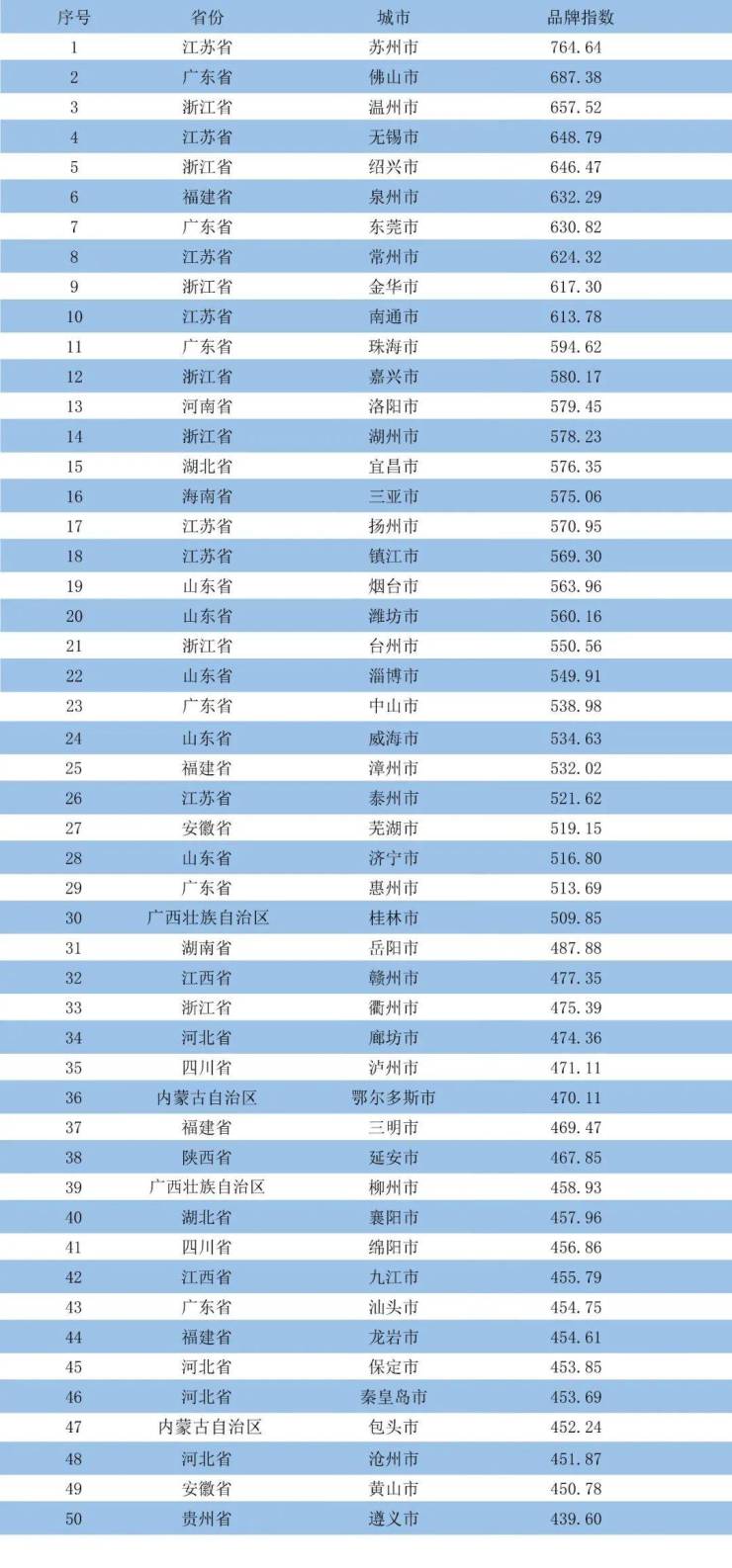 近日,2023中国地级市品牌评价综合影响力指数揭晓。中国城市品牌评价项目组、中国城市报社在中国品牌建设促进会、中国报业协会、中国国土经济学会等机构支持下,依据国际标准《品牌评价基础和原则》(ISO20671:2019)和国家标准《品牌评价城市》(GB/T35779-2017),运用近两年的国家统计数据,对全国293个地级市(不含省会以上城市)进行标准化分析,最终计算出各城市品牌综合影响力指数,发布前100名城市名单(不含省会以上城市)。