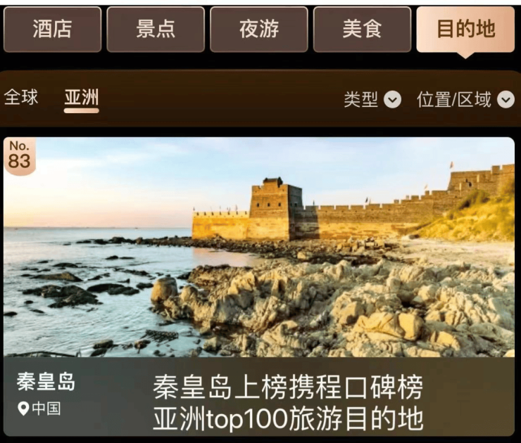 秦皇岛上榜2024“亚洲top100旅游目的地”!