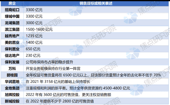 5月27日,焦点研究院发布了2021房企业绩会总览,根据焦点研究院的统计,由于行业下行的因素,30家样本房企中,仅8家公布了年度销售目标的准确数字,与2021年相比,平均涨幅仅3.5%,可以说是非常低调。