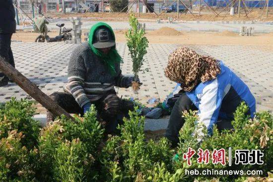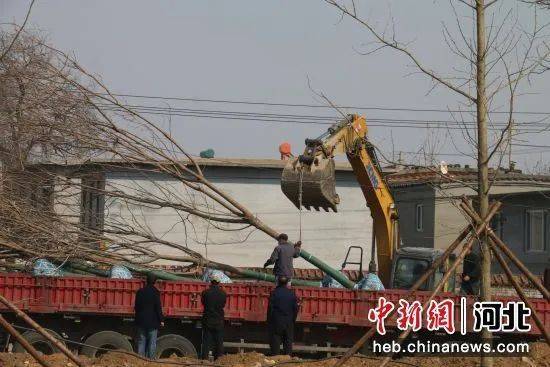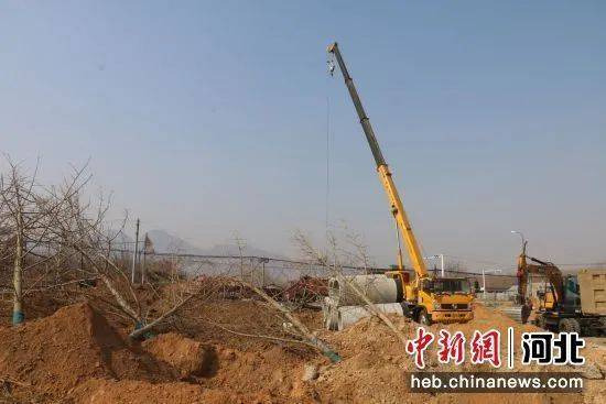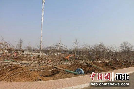 近日,秦皇岛市山海关威远门遗址公园停车场附近,重型起重机、挖掘机伸着巨臂,提着即将栽植的树木在空中循环往复,工人们有条不紊地栽种乔灌木,一派繁忙景象。