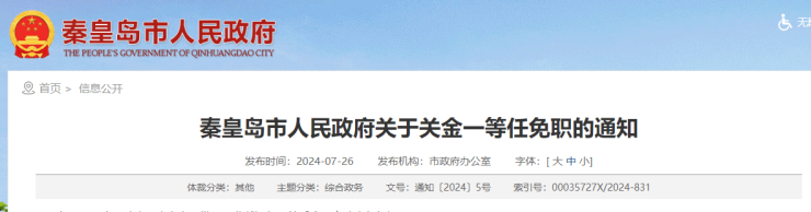 秦皇岛最新任免职通知!