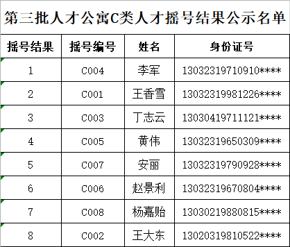 注:C类人才1-8名,D类人才1-98名为选房人才,99-221名为备选人才,未选到住房的人才按选房顺序号轮候到下一次选房。