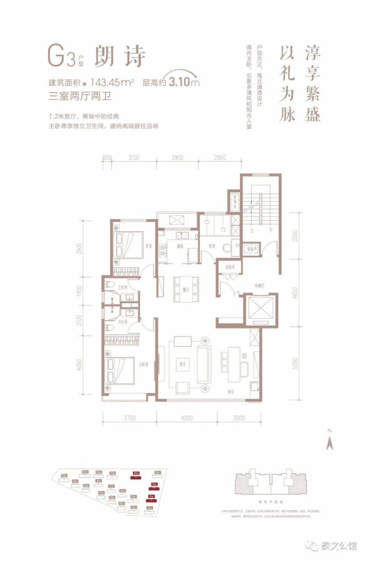 建面约124平米和143平米样板间,三室两厅两卫设计,匠心倾筑宽幕横厅,宽厅达到难得的6.7米和7.4米,全面屏通透视野。其中143平米户型,仅客厅大窗的宽度就达到难能可贵的5.5米,高2.3米,整体窗体面积12.8平米,相当于普通社区主卧的面积;124平米户型客厅大窗的宽度为4.8米,高2.25米,整体面积10.8平米,充分保证了光照和温度的需求。