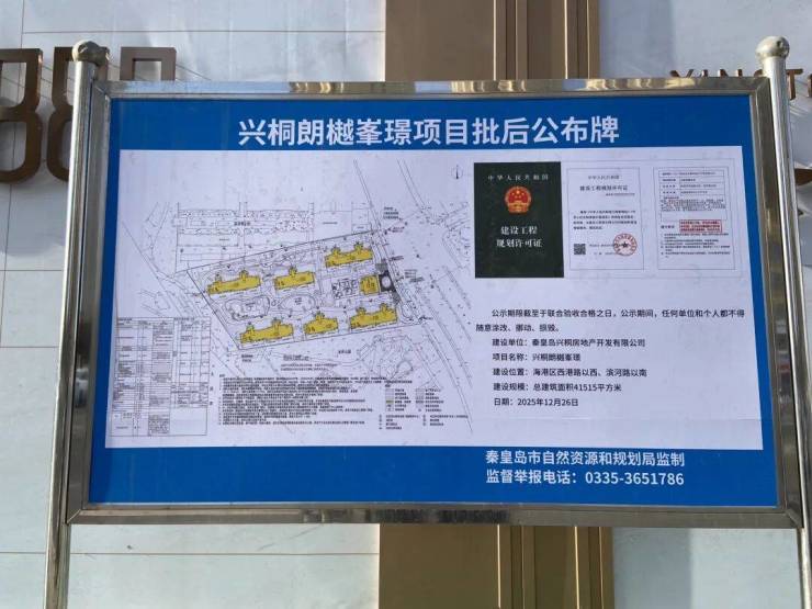 近日,秦皇岛市自然资源和规划局发布了“兴桐朗樾峯璟”项目的批后公布信息,标志着该项目已正式获得建设工程规划许可,即将进入建设阶段。
