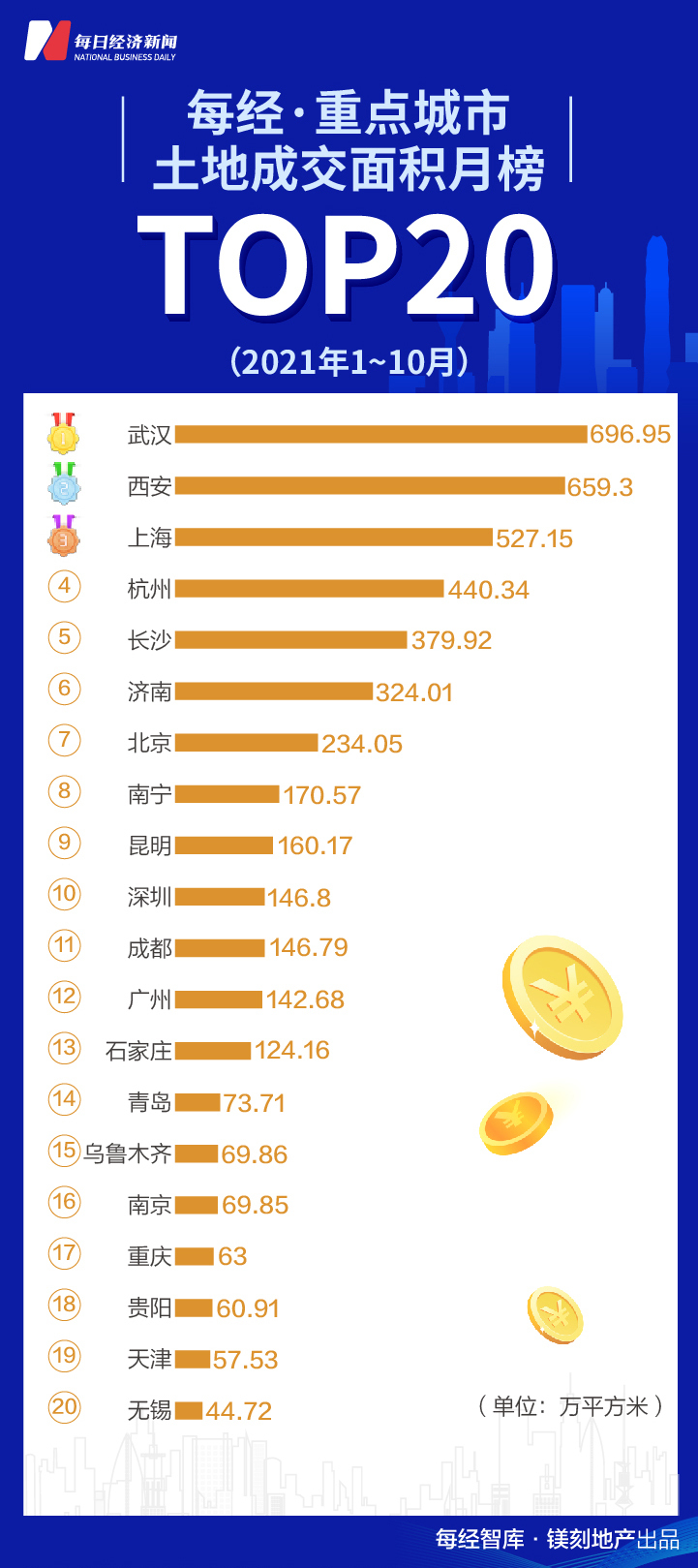 从单月情况来看,2021年10月,全国多个城市土地出让金和土地成交面积均大幅下降。