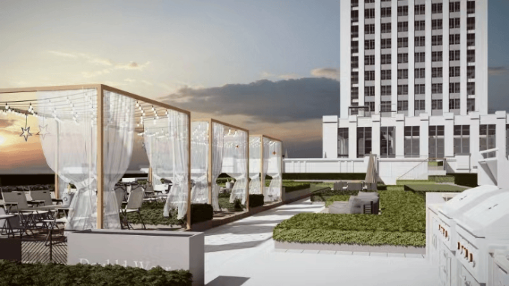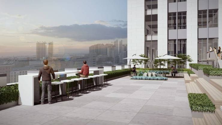 特聘请埃尔莎设计公司打造,成树移植,绿化率高达40%,酒店屋顶,商业屋顶打造的屋顶平台花园,更是提高了业主居住观感体验,同时酒店的屋顶花园具备休闲娱乐功能,也是对业主开放的,屋顶花园的打造提升项目品质同时还成为港城人居新标杆。