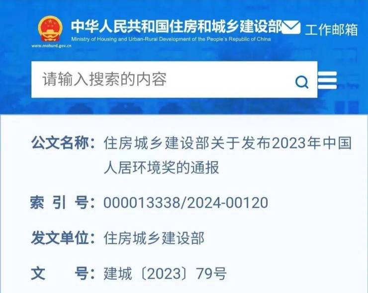 “中国人居环境奖”是全国人居环境建设领域的最高荣誉奖项。