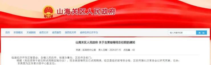 杨娜同志任东山街道办事处副主任;