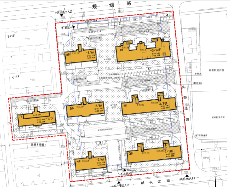项目包含7栋住宅楼,分别为两栋18层小高层、一栋26层高层、一栋5层洋房和三栋6层洋房组成。