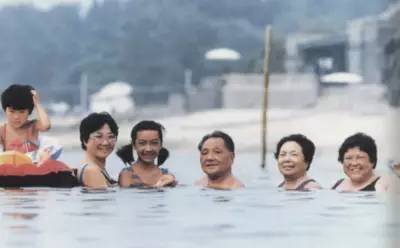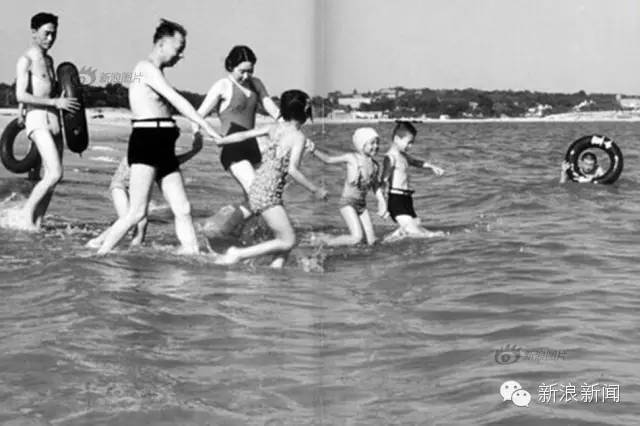 那个时候的夏季,中办的北戴河管理处,通常要从国家游泳队请几位女运动员,专门负责教在此避暑的首长和孩子们游泳。刘少奇一家也是北戴河的常客。刘的子女有的在外地工作,每年的北戴河休假,是他们全家大团圆的时候。图为1954年夏,刘少奇、王光美同子女在北戴河游泳。
