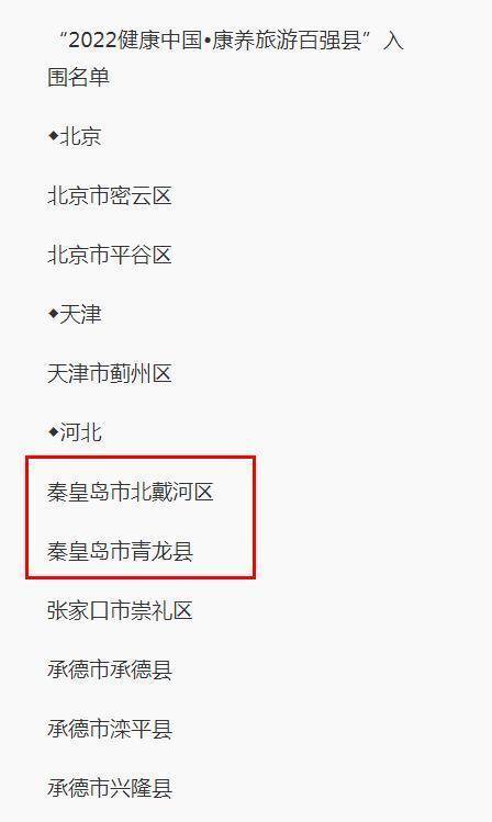2022中国康养旅游百强县名单,秦皇岛两区县入围