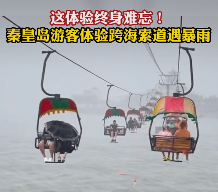 近日,秦皇岛游客体验跨海索道时突遇暴雨,事先准备的雨衣不能说毫无作用,但用处着实不大,太阳伞在此刻也被迫身兼多职,抵挡风雨,啥都没有的游客就只能任“冷冷的冰雨在脸上胡乱地拍”,这体验少有、终生难忘!