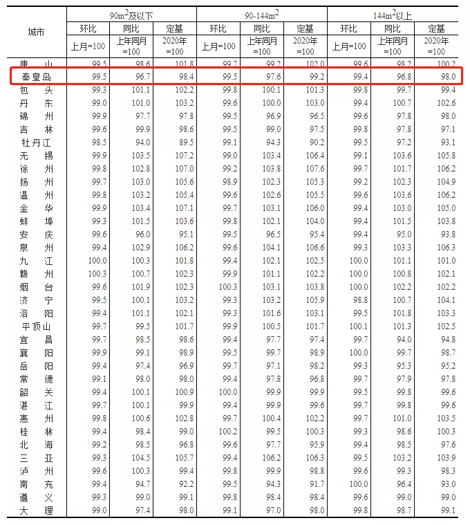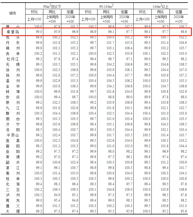 2021年12月份,秦皇岛新建商品住宅和二手房价格同比环比连续5个月双下跌,且跌幅均超过11月份!