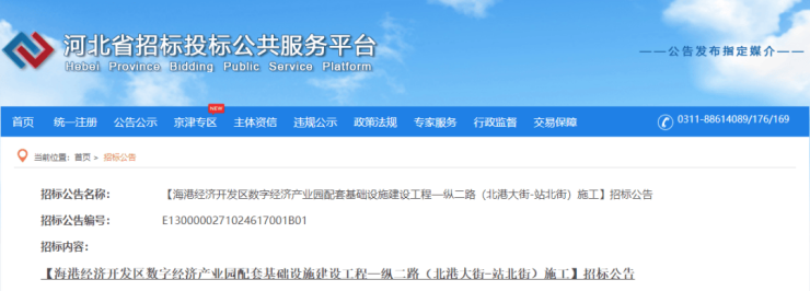 本招标项目海港经济开发区数字经济产业园配套基础设施建设工程—韩石路(北港大街-站北街)施工已由秦皇岛市海港区发展和改革局以海港区发展和改革局关于海港经济开发区数字经济产业园配套基础设施建设工 程初步设计的批复(海发改审[2023]16 号)批准建设,项目业主为河北秦皇岛海港经济开发区管理委员会,建设资金来自区财政投资出资比例为区财政投资占比100.00%,招标人为河北秦皇岛海港经济开发区管理委员会。