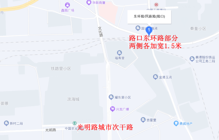 东环路与民族路交叉路口东环路部分做展宽改造,既有混凝土路面保留利用,两侧各加宽1.5米,人行道拆除新建。