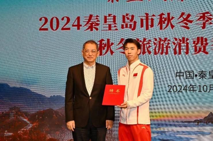 10月25日,“秦皇山海·四季皆游”2024秦皇岛市秋冬季旅游产品发布会暨秋冬旅游消费季启动仪式在北戴河新区如是海度假村举行。市长丁伟宣布活动启动并为2024年巴黎奥运冠军龙道一颁发“秦皇岛文旅”代言人聘书。
