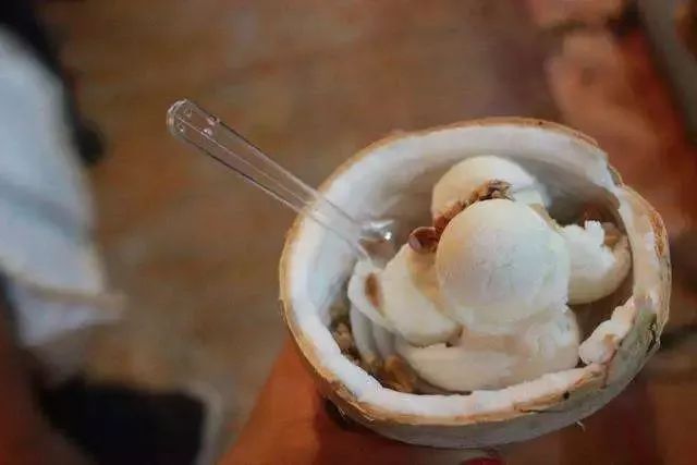 不光是鲜果好吃,做出甜点也超级美味,椰子冰激凌嫩滑香甜不腻人,大商场、路边小摊都有卖。