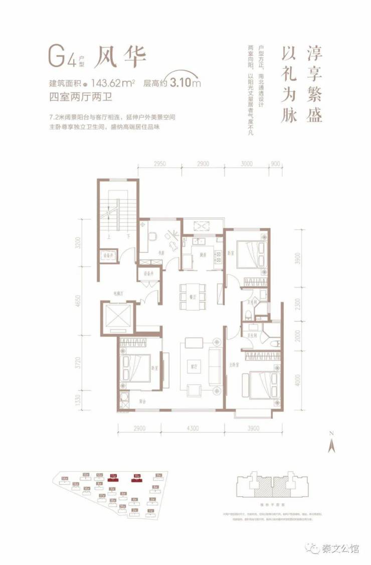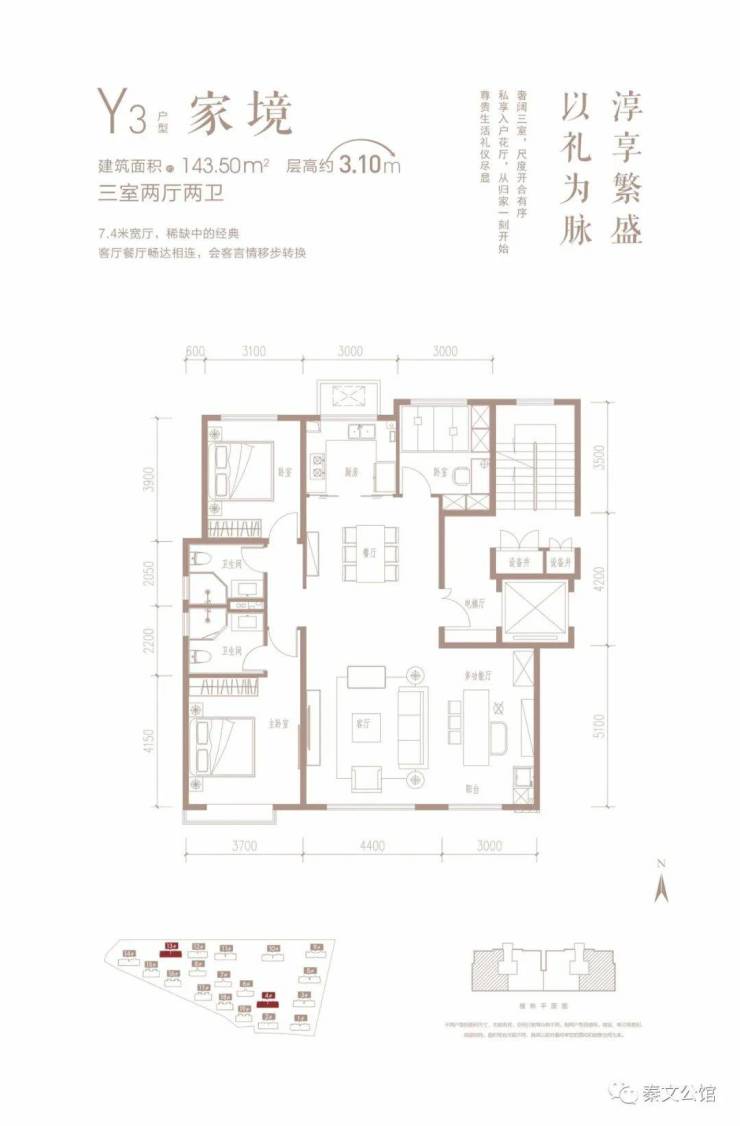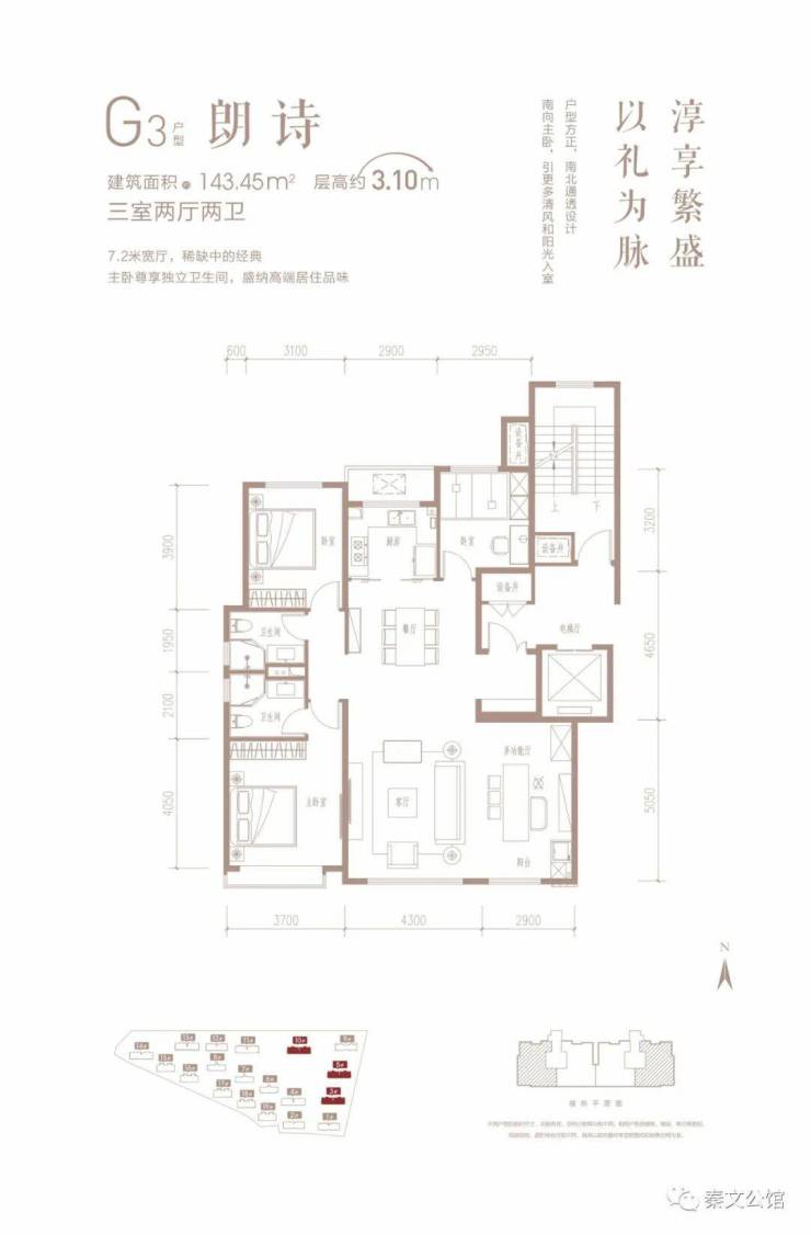 洞察塔尖圈层对宽度的高度需求,秦文公馆打造 主力面积为124平米舒适三居、143平米宽厅三居和四居,183平米奢华大平层、210—233㎡叠拼,宽奢大横厅,配备子母门,电子门锁多重开启,智能家居全部预留接口,143平米及以下为家庭式豪装,装修标准全部采用国际国内一线品牌,户型层高3.05米—3.15米之间,全部20公分落地窗,木包铝窗户、2.3米门高等数十匠心细节打造西部片区人居标杆!