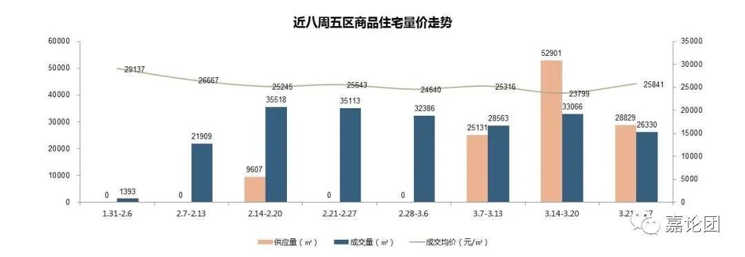 近八周福州五区新房量价走势 来源:嘉论市场研究中心
