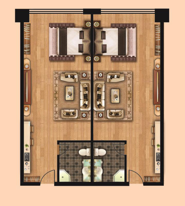 万和天地公寓总高25层,1-4层为商业,5-7层为创客天地,以办公功能为主,可注册公司,8-12层为酒店层,将进驻市级知名酒店,以返租形式进行出售,13-23层性质为loft公寓,挑高达到3.6米,24-25层为总部层,2887平米整层出售。
