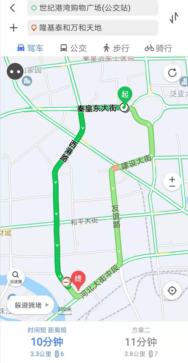 两地距离约为3.3公里,共经过6个红绿灯,驾车时间约为10分钟。