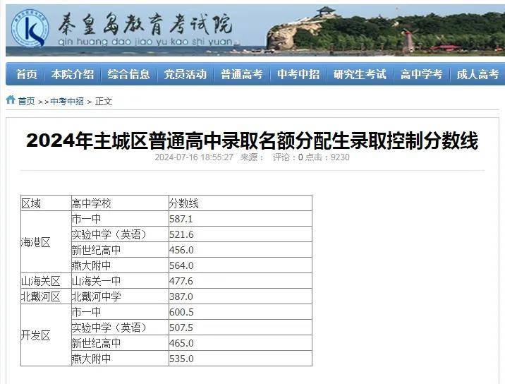 ↓↓ 此前秦皇岛教育考试院发布秦皇岛市2024年高中阶段各类学校招生录取控制分数线↓↓