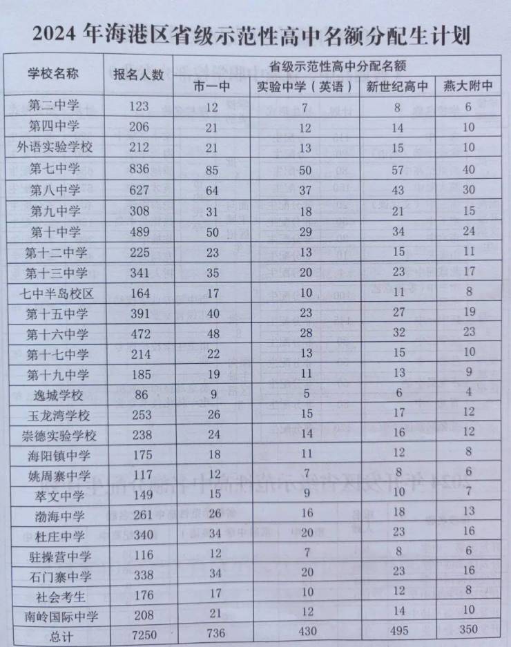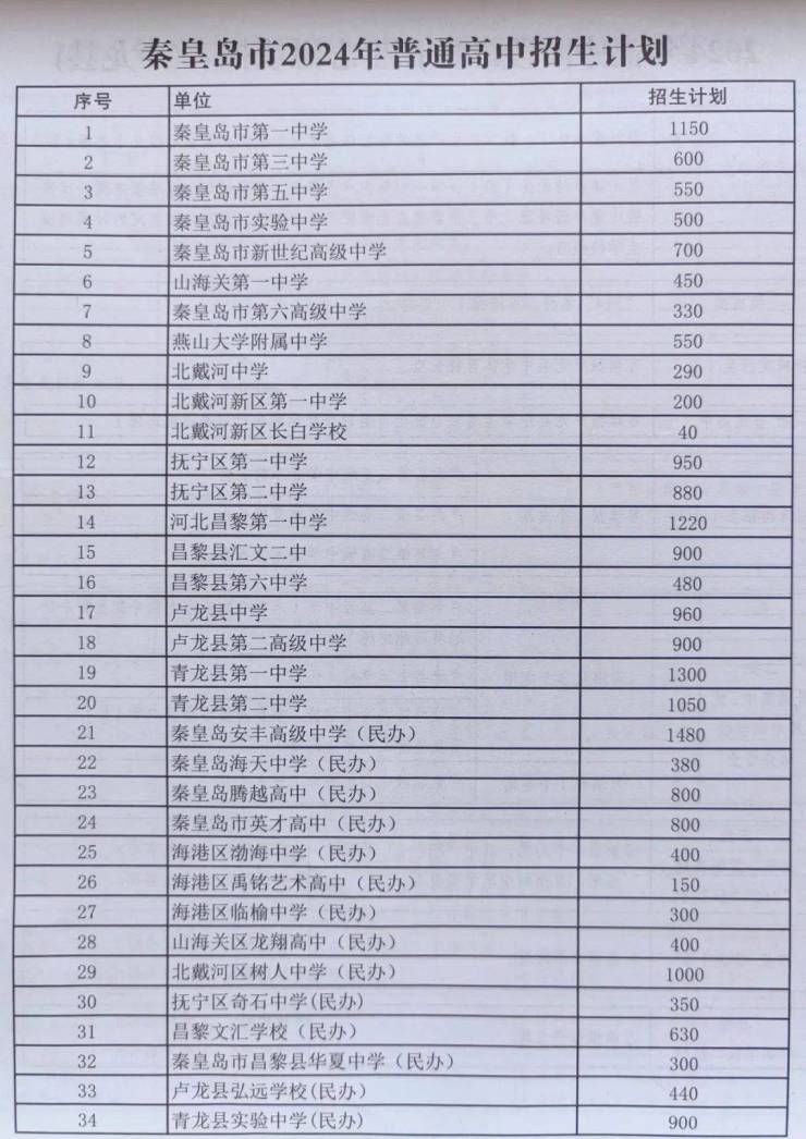 秦皇岛市2024年高中阶段学校