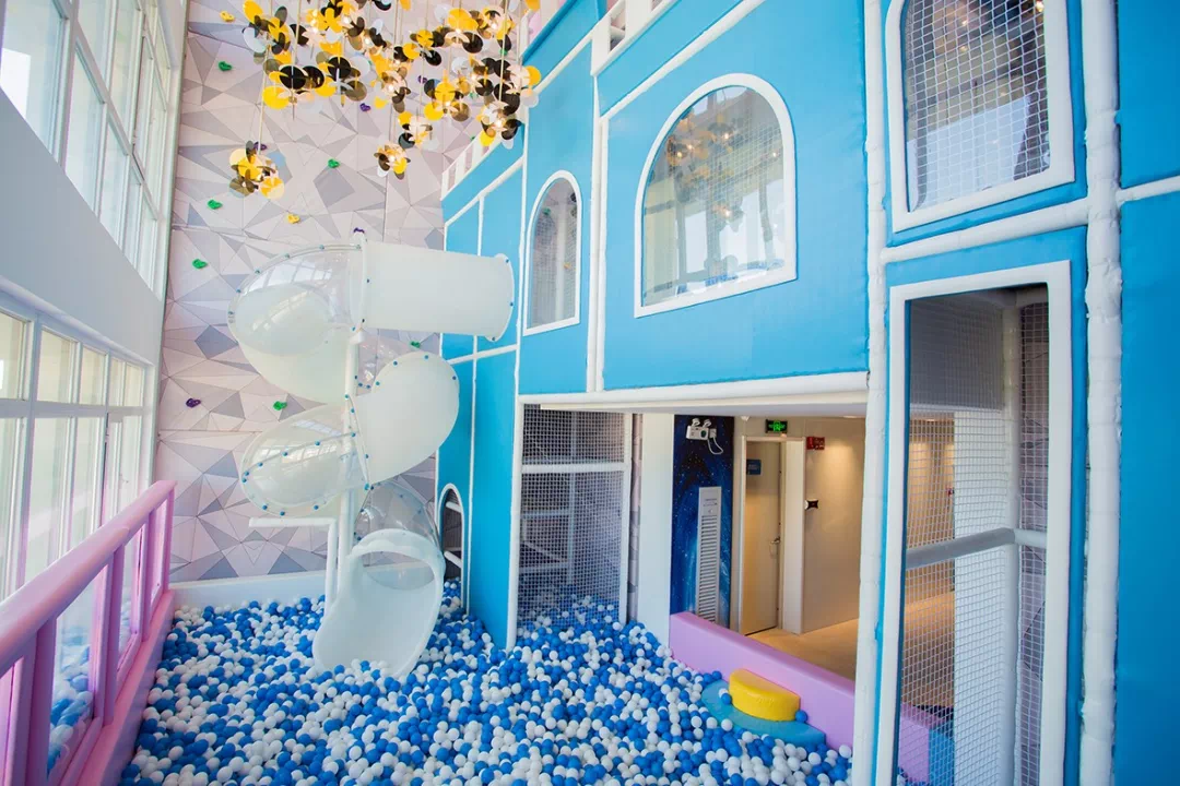 汐溪的孩子·亲子酒店:以日本著名漫画形象为灵感设计打造,充满童真的设计质感搭配梦幻色彩,一切服务细节围绕亲子度假需求深入考量。野趣帐篷与云朵装饰随处可见,酒店内同时配备国内外首屈一指的室内攀岩墙和旋转滑梯开启一段家长与孩子共同的探索之旅。