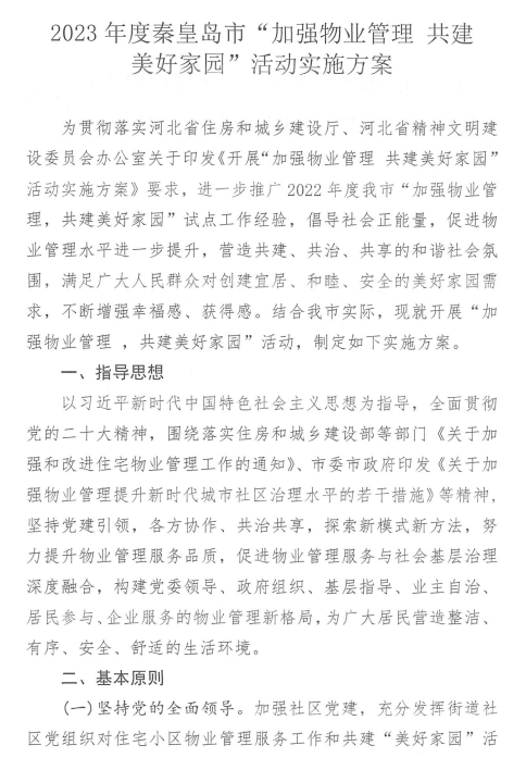 秦皇岛市即将开展“加强物业管理 共建美好家园”活动