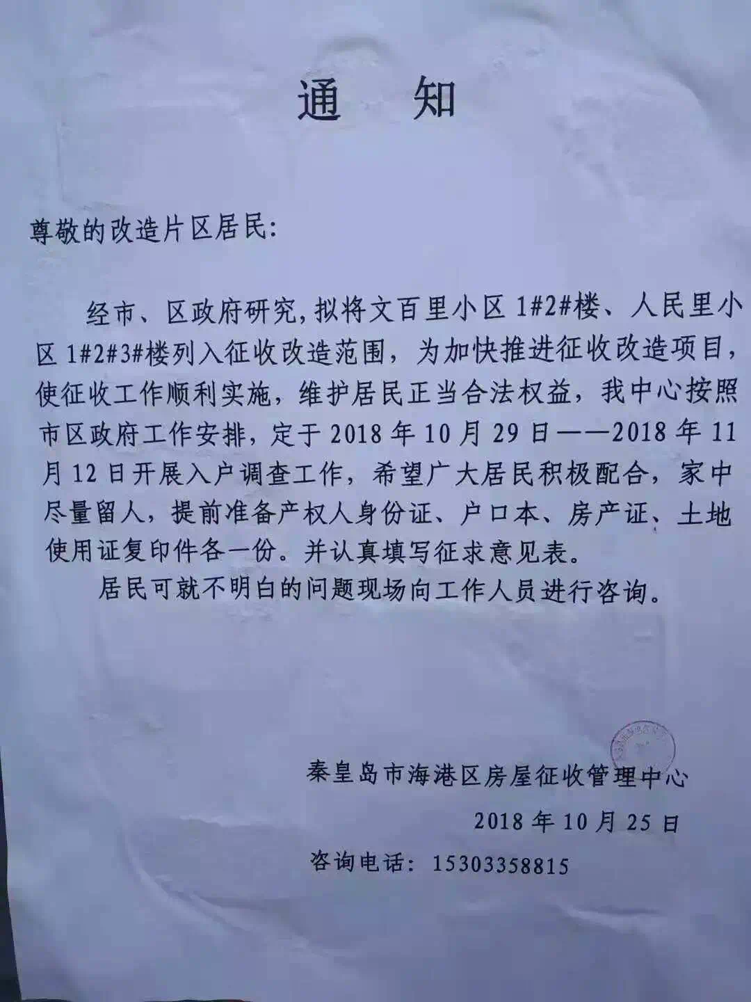 记者从海港区房屋征收管理中心了解到,此次公示的主要目的是为了征集居民对房屋改造项目的具体意见或建议。
