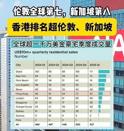 6月24日,莱坊发布《全球超级豪宅报告》。今年一季度,全球价格逾千万美元(约合7800万港元)的超级豪宅成交527宗,香港成交42宗,环比去年四季度激增140%,排名全球第六,增幅居亚洲之首。