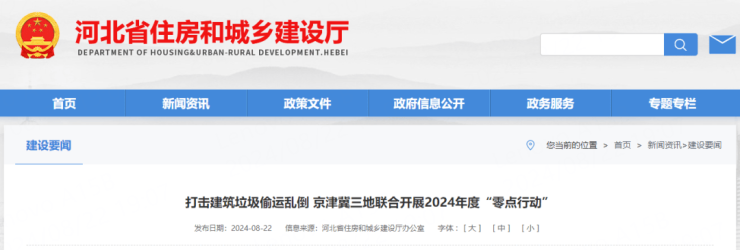 河北省住房和城乡建设厅办公室最新发布消息,自8月起至10月底,北京、天津、河北三地联合开展2024年度打击建筑垃圾偷运乱倒行为专项治理“零点行动”↓↓↓