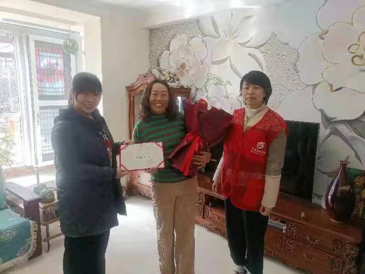 吕阿姨是网格员之一,作为一名巾帼志愿者,在大规模核酸检测点、新冠疫苗临时接种点,总能看到她参与志愿服务的身影。她坚持服务社区居民的宗旨,团结发动辖区妇女群众共同参与社区志愿服务,凝聚“她”力量,传递正能量。收到献花的她收到献花的她洋溢着幸福的微笑,高兴地说:“这个花太香了,因为你们我过了一个特殊的三八节,太谢谢了。”