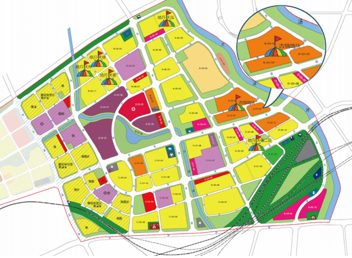 海阳古镇板块用地面积约192亩,大概在皓月城中的这个位置↓↓