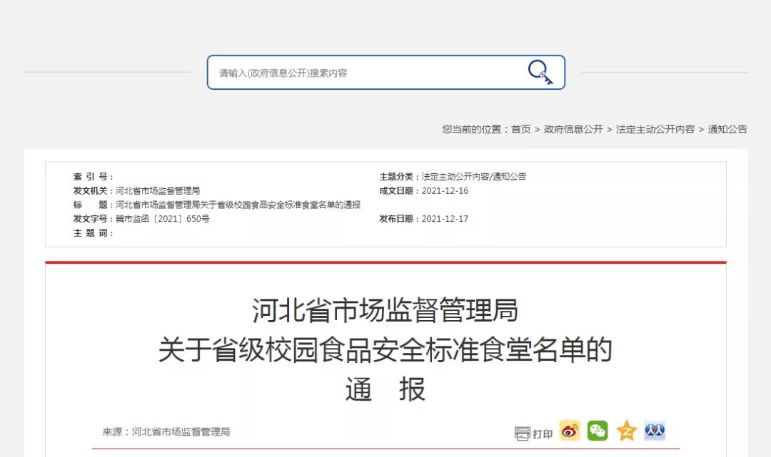 为全面提升学校食堂食品安全水平,充分发挥省级标准食堂的示范引领作用,按照《河北省校园食品质量安全水平提升三年行动计划(2019-2021年)》工作目标和任务要求,采用典型引领、动态管理、市级评定的原则,各地市场监督管理部门对2021年度省级校园食品安全标准食堂进行了评定,确定了全省455家省级校园食品安全标准食堂,其中秦皇岛18家。
