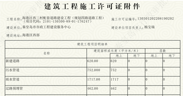 秦皇岛行政审批局发布了6条道路的施工许可证或可行性批复。这6条道路均位于海港区,市中心与西部片区均有分布。详情如下: