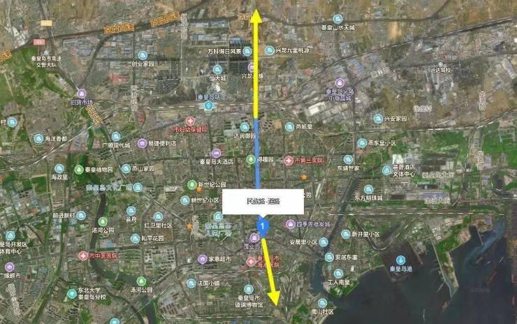 三、拟建地点:海港区民族路南段,北起河北大街中段交叉口以北约180米,南至海滨路段。