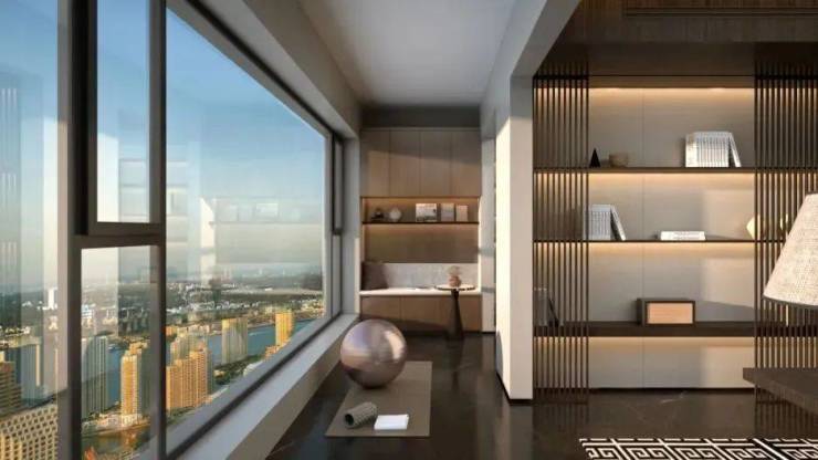 中冶·玉带湾南院聘请万景百年执笔空间哲学,巨幕光感落地窗搭配瞰景敞阔双阳台的设计,打破传统室内空间的边界,让阳光与风景自然纳入生活。