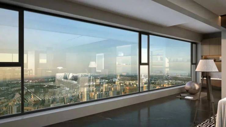 中冶·玉带湾南院的外窗系统,核心采用三层两中空Low-E玻璃,结合隐藏式内开内倒设计与坚朗品牌五金件,一举实现保温、隔音与美学的三重突破。