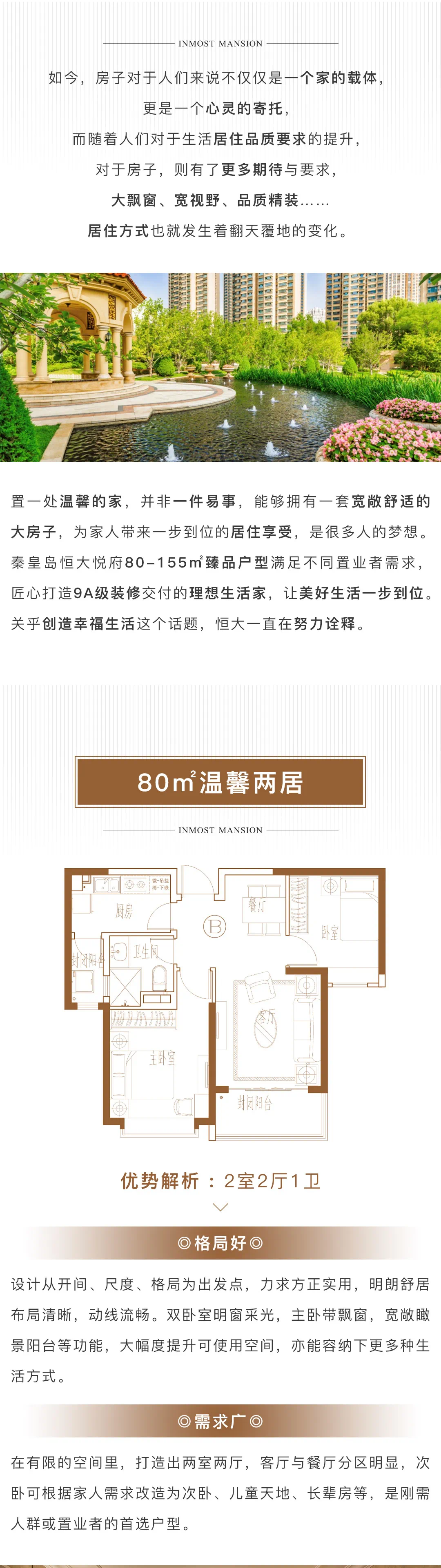 秦皇岛恒大悦府80-155平米精品户型满足不同置业者需求,匠心打造9A级装修交付的理想生活家,让美好生活一步到位,关乎创造幸福生活这个话题,恒大一直在努力诠释。