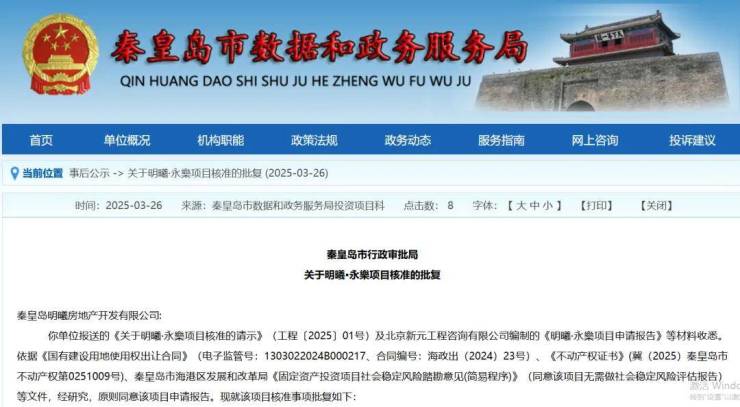 一、同意建设明曦·永樂。建设单位为秦皇岛明曦房地产开发有限公司。