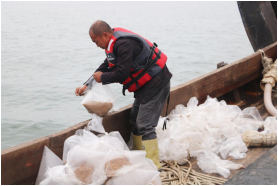 当天上午,渔业工作人员积极为梭子蟹苗增殖放流开展准备工作。