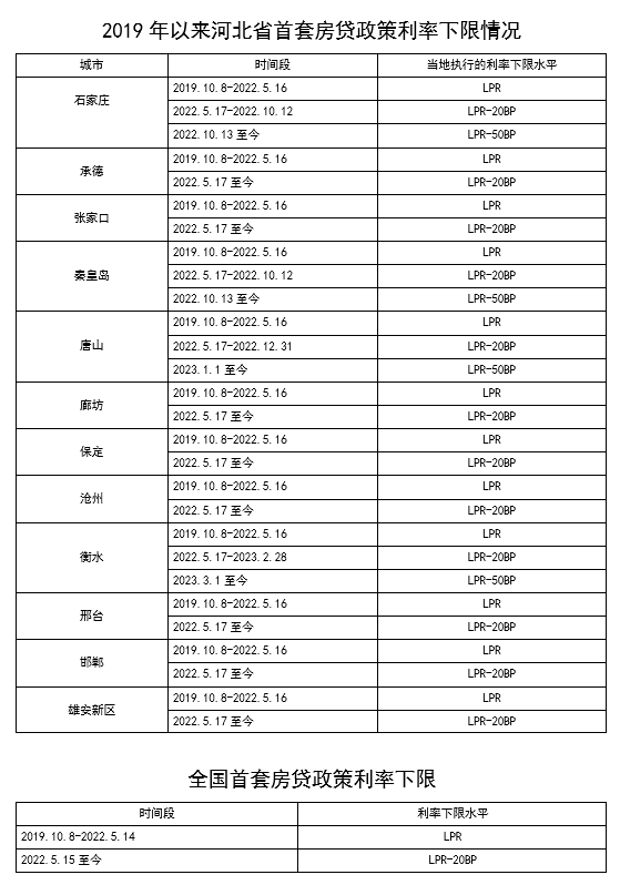 2019年8月,人民银行发布第16号公告,自2019年10月8日起,全国首套房贷利率政策下限为LPR。2022年5月,人民银行、原银保监会发布《关于调整差别化住房信贷政策有关问题的通知》(银发〔2022〕115号),自2022年5月15日起,全国首套房贷利率政策下限调整为LPR减20个基点。